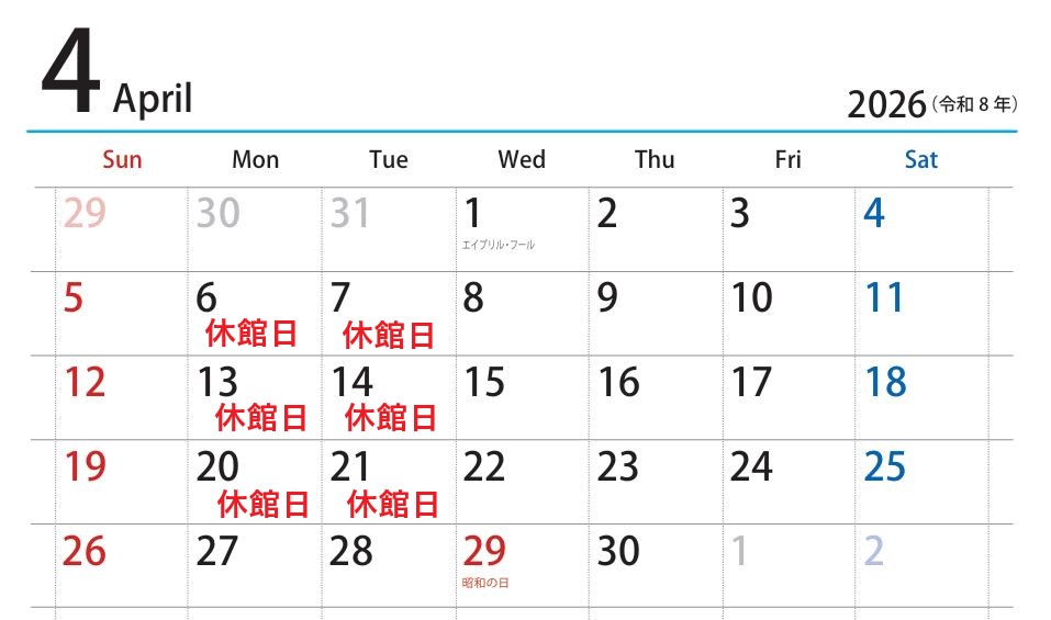 4月の休館日ご案内
