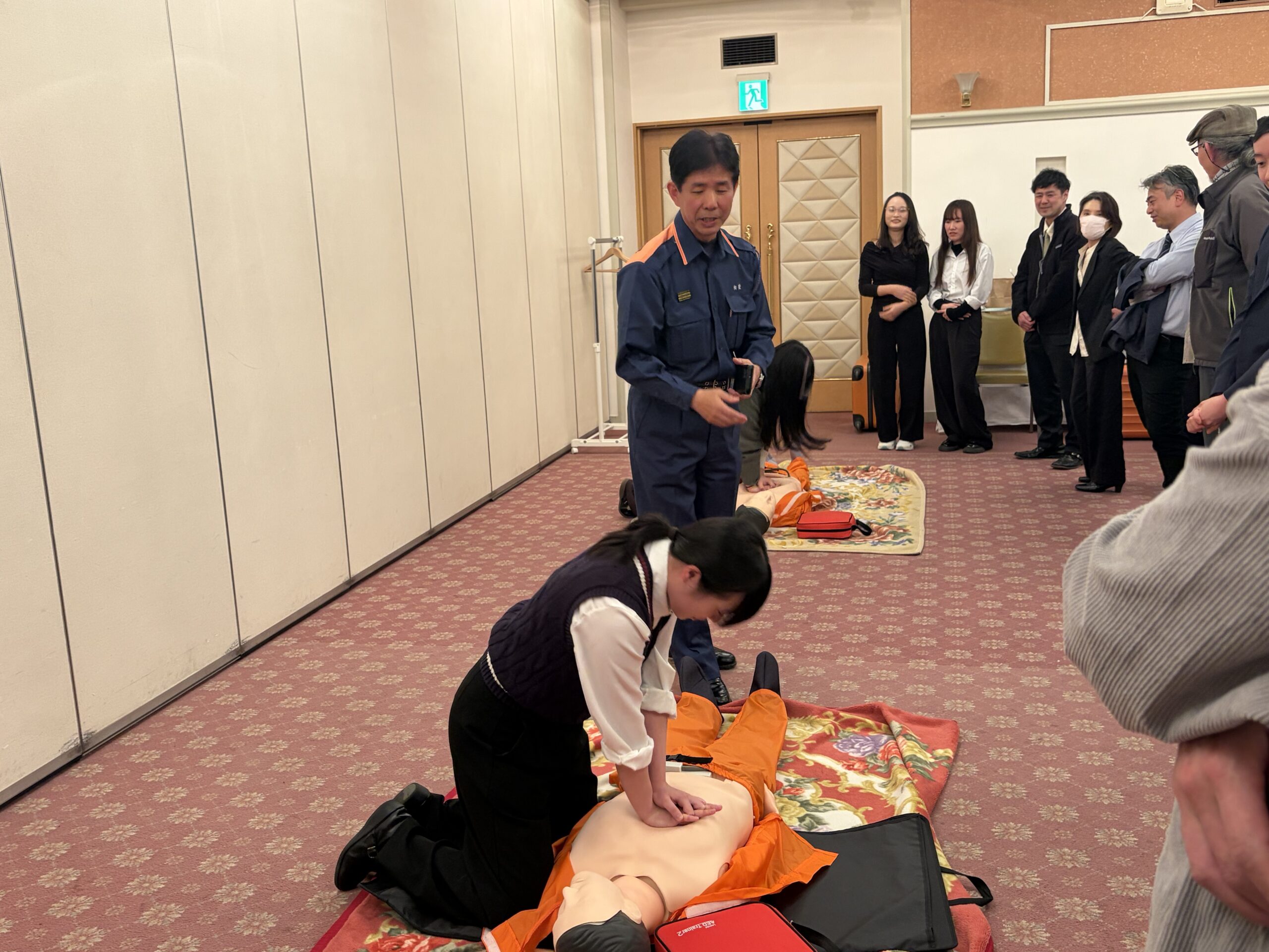 「いざ」というときに、すぐに動けるかどうかは、事前の備えにかかっています。お客様の大切な時間をお預かりする私たちにとって、こうした緊急対応の知識と技術は欠かせないもの。参加したスタッフ一人ひとりが、真剣な表情で取り組んでいました。