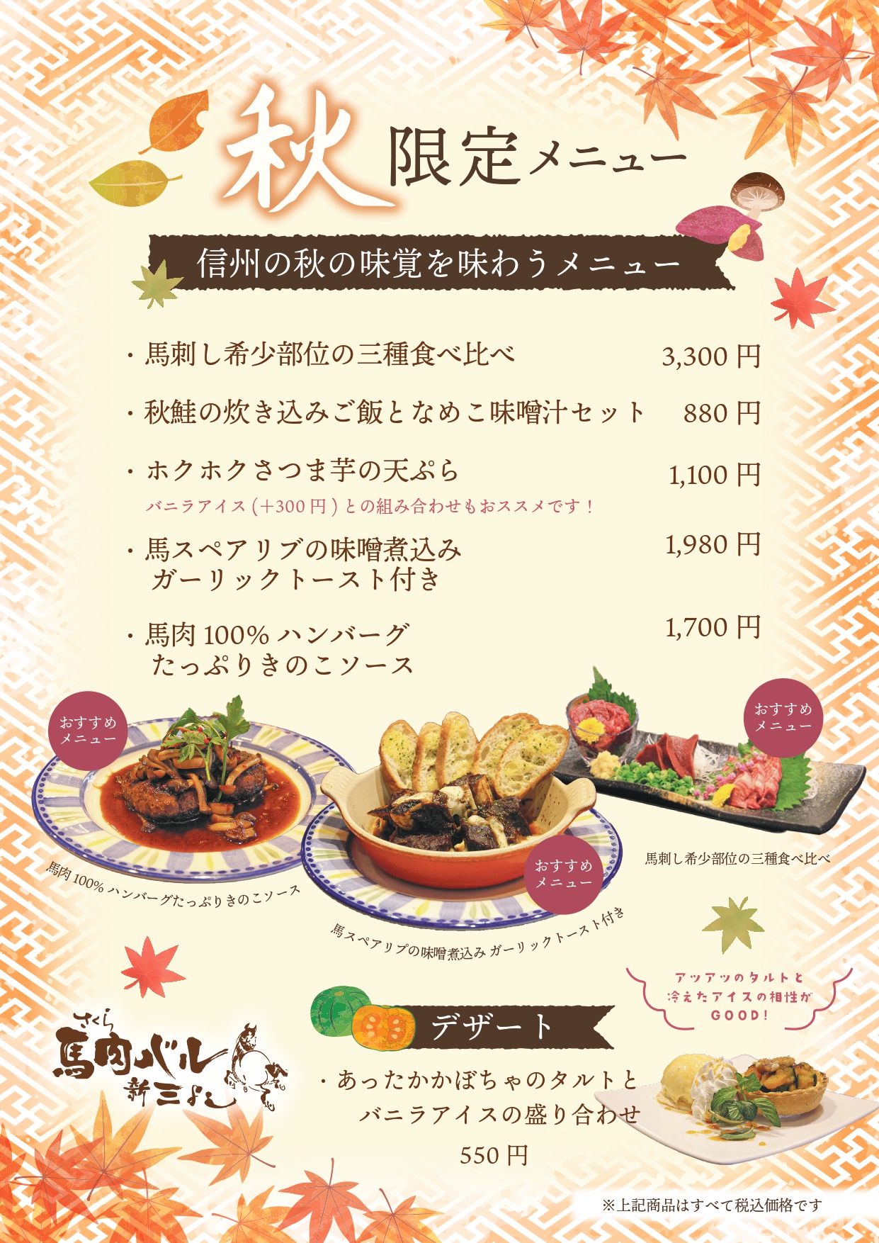 観光やご旅行の合間に、ぜひ松本・新三よしで秋の味覚をご堪能ください。