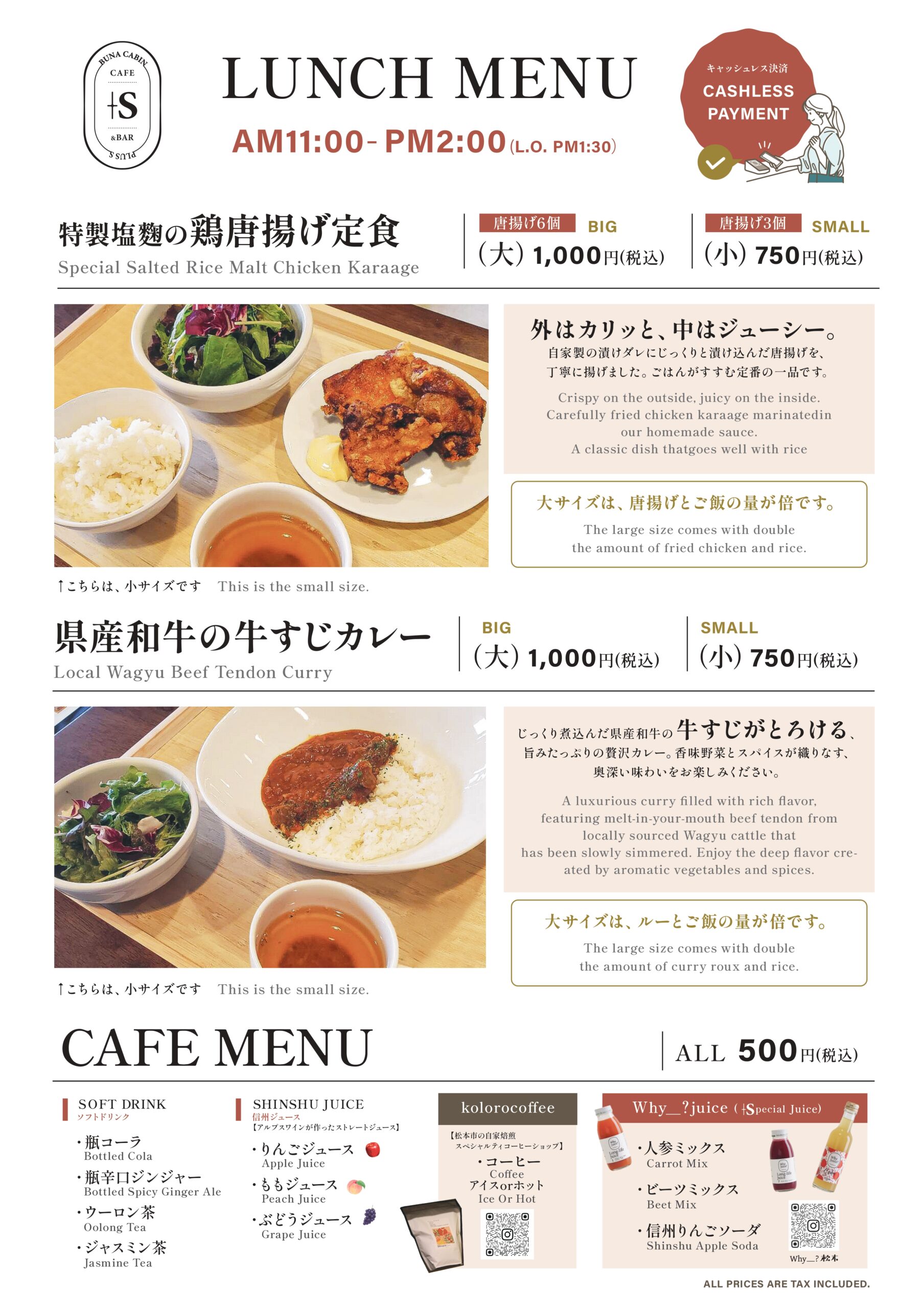 1000円で味わえるCafe&Bar+Sのランチをぜひお試しください!