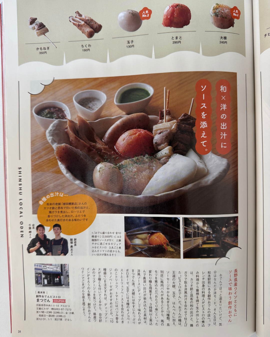 「創作おでんビストロ まつでん」は、松本の”おでん文化”を新しい形で楽しめる創作ビストロです!