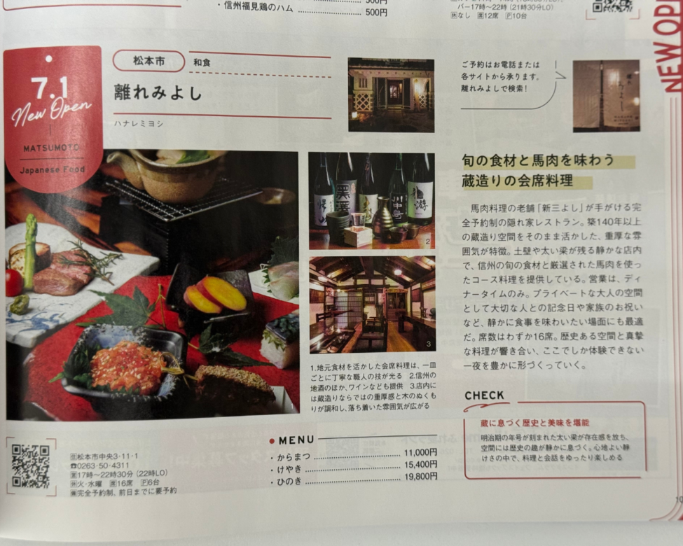 「離れ みよし」は、明治32年創業の馬肉専門老舗「新三よし」から誕生した隠れ家レストランです!
