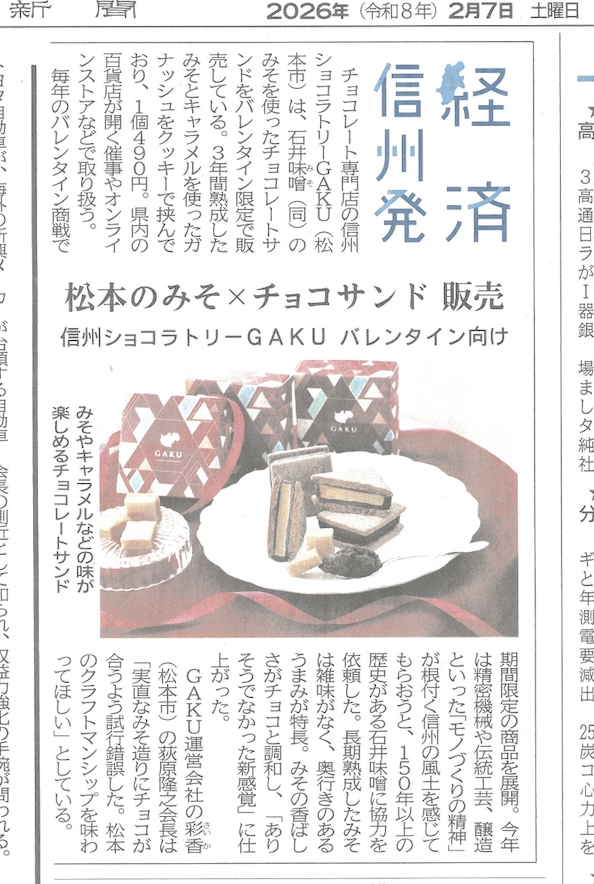 『信州ショコラトリー GAKU』が紹介されました。