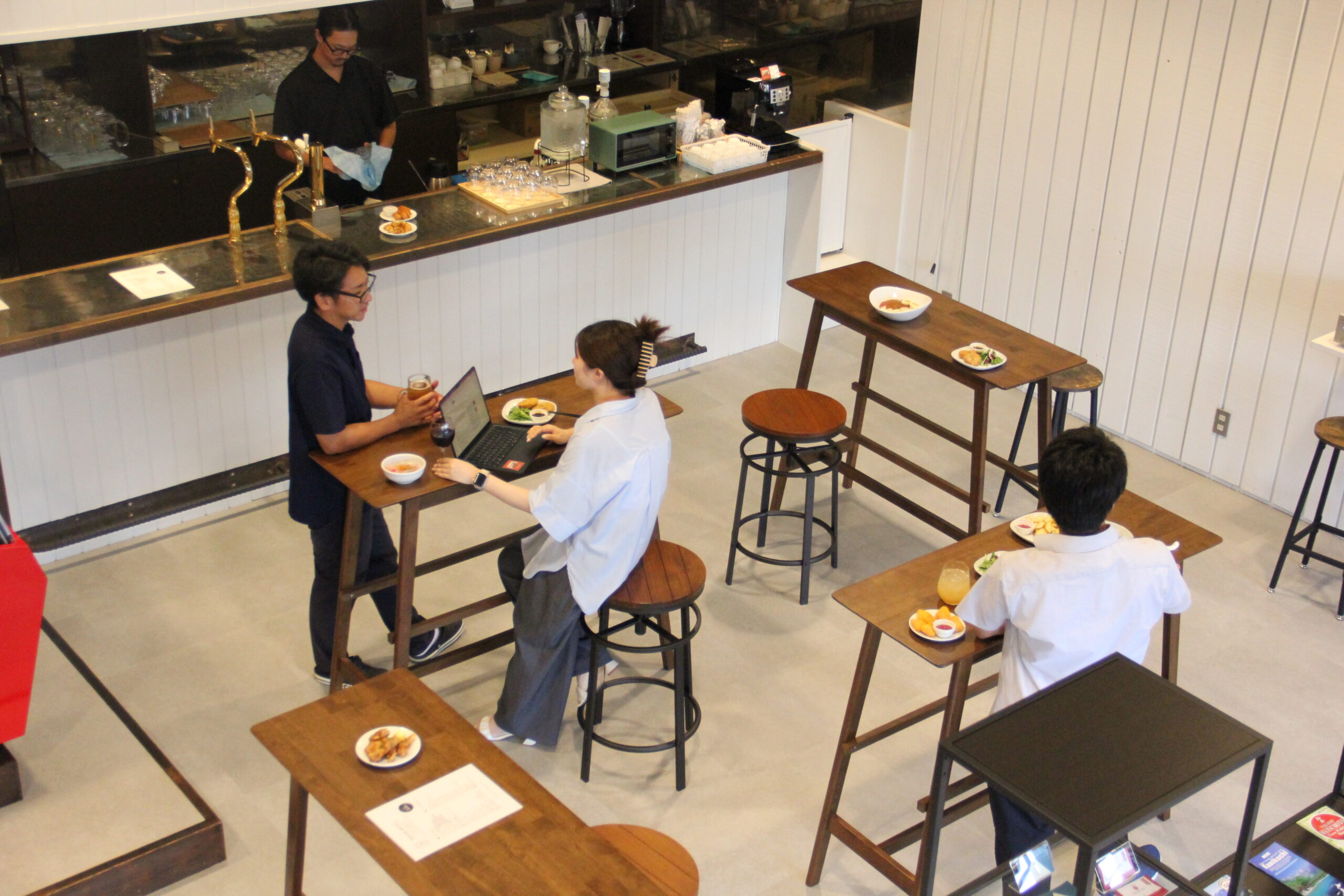 併設の立ち飲みBARでは旅人も地元の人も気軽に集い、食べて、飲んで、