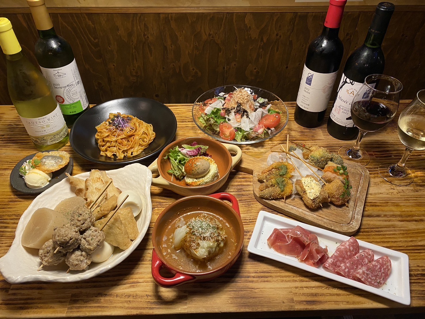 地元産の和牛や白馬ポーク、信州サーモンなど、新鮮な食材を使用した串焼きや鍋料理を、